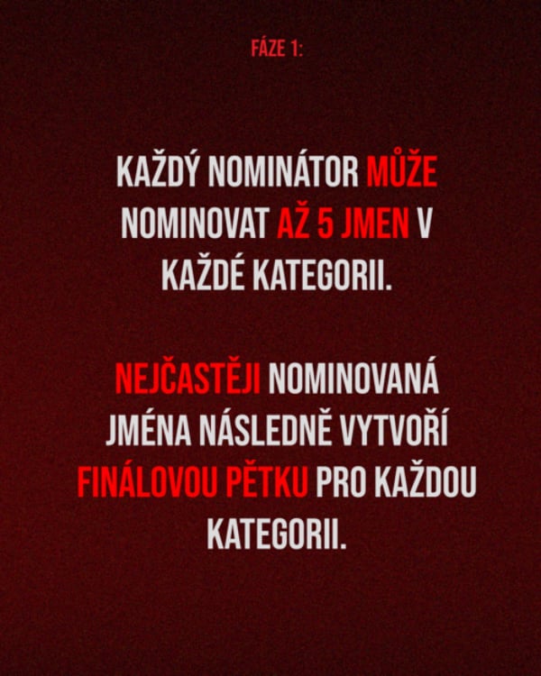 Seznam se s letošními nominanty, pusť jsi medailonky jednotlivých kategorií a podpoř své favority ve veřejném hlasování - odkaz níže.